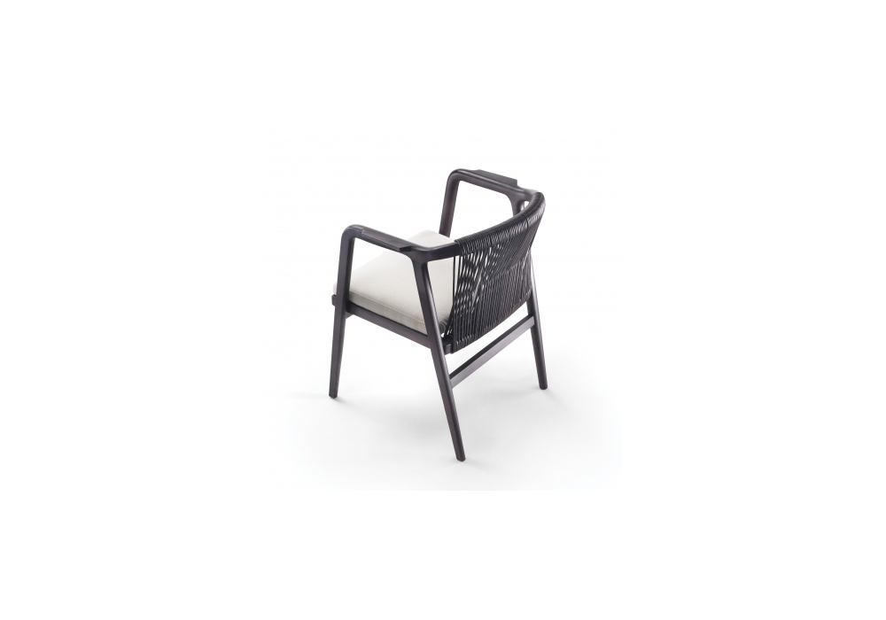Crono firmata da Antonio Citterio per Flexform è una poltrona con struttura realizzata in massello di noce canaletto o frassino, seduta in multistrato e metallo con imbottitura in poliuretano espanso e schienale in corda di cuoio intrecciata. Il sedile è rivestito in tessuto o pelle.