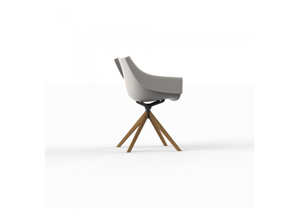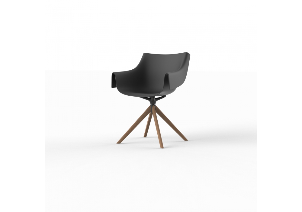 Manta firmata da Eugeni Quitllet per Vondom è una poltroncina girevole con gambe in legno realizzata con seduta in polipropilene e base in metallo. Disponibile in diverse finiture.