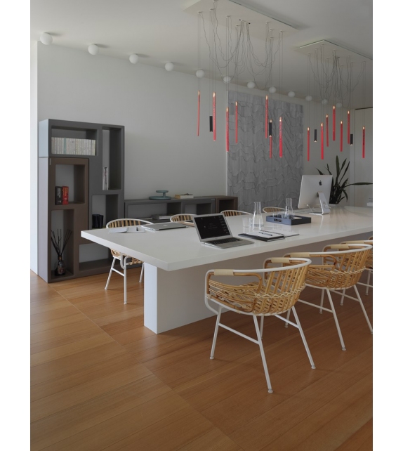 Raphia firmata da Lucidi Pevere per Casamania è una sedia realizzata con telaio in metallo verniciato goffrato. Seduta e schienale in giunco naturale. Legacci in nylon. Piedini autolivellanti.
