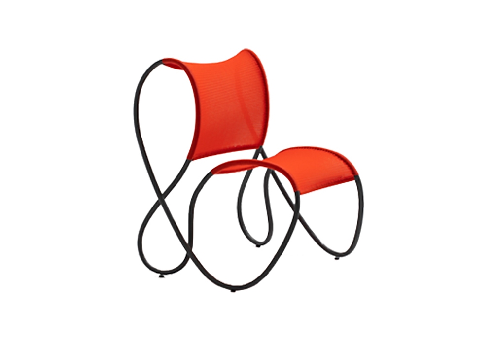 Modou firmata da Ron Arad per Moroso è una poltroncina realizzata con struttura in tubolare di acciaio inossidabile e avvolta con corda in polietilene intrecciata a mano. Scivoli in PVC.