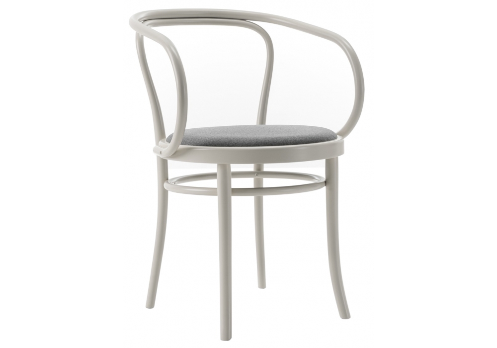 Wiener firmata da Gebrüder Thonet Vienna è una poltroncina realizzata in faggio curvato, disponibile in diverse finiture o nella versione bi-color (gambe posteriori in faggio naturale e struttura laccata nei colori di collezione). Seduta imbottita con rivestimento in tessuto o pelle.