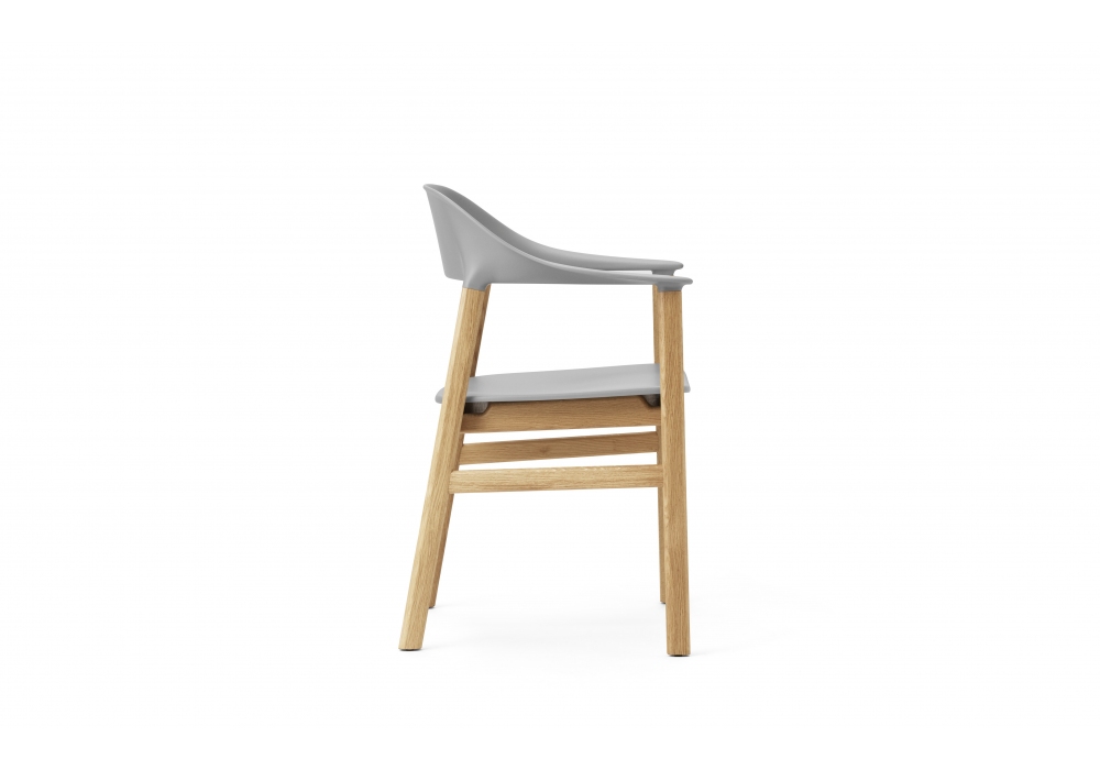 Herit, firmata da Simon Legald per Normann Copenhagen, è una sedia, strutturata in polipropilene in combinazione con il rovere, nelle finiture; grigio , bianco, nero, sabbia o verde polveroso. Herit è disponibile in due differenti versioni, con struttura e gambe in rovere o in rovere fumè.