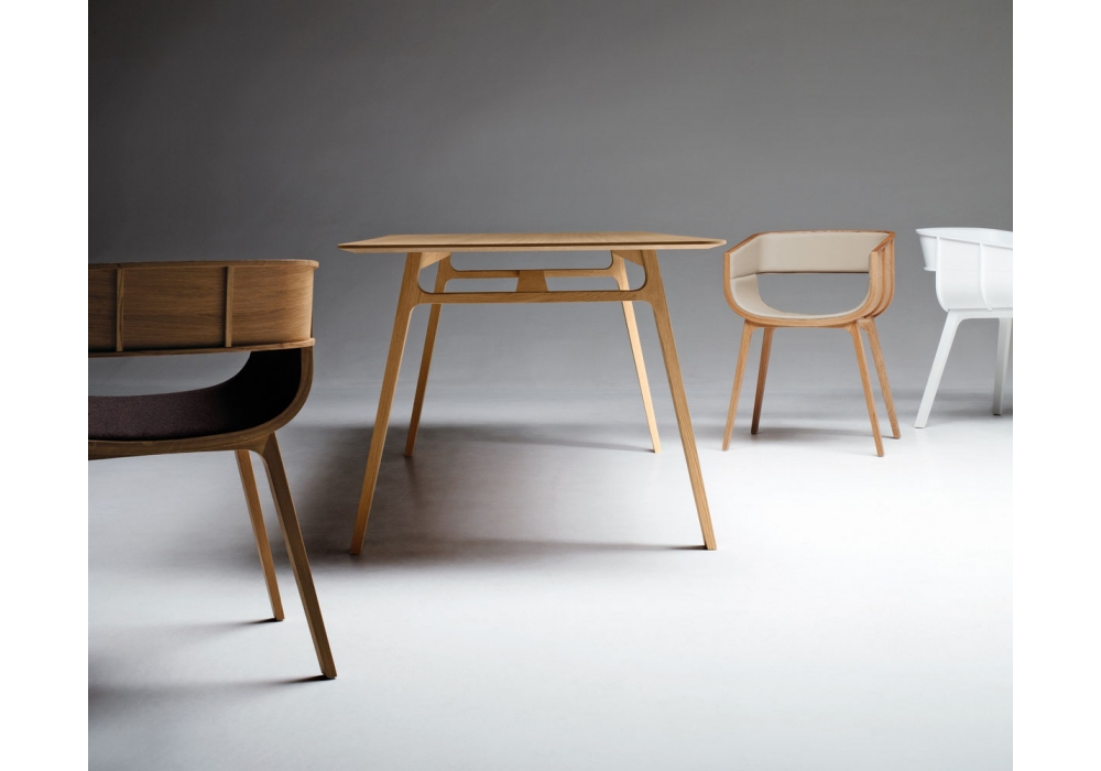 Maritime Imbottita firmata da Benjamin Hubert per Casamania è una poltroncina in legno massello e multistrato di rovere. Seduta e schienale imbottiti e rivestiti in tessuto, ecopelle o pelle. Disponibile in diverse finiture.