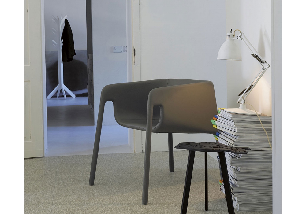 Lobby firmata da Stokkeaustad per Casamania è una sedia a pozzetto, completamente imbottita e rivestita in tessuto o pelle non sfoderabili, nasce dal tentativo di creare un prodotto che delimiti lo spazio circostante. La particolare forma della seduta e dei braccioli conferisce all’ambiente circostante un’atmosfera familiare ed accogliente. Si tratta di una sedia di carattere, dalle linee pulite, esternamente rigorosa e decisa, internamente modellata e morbida.