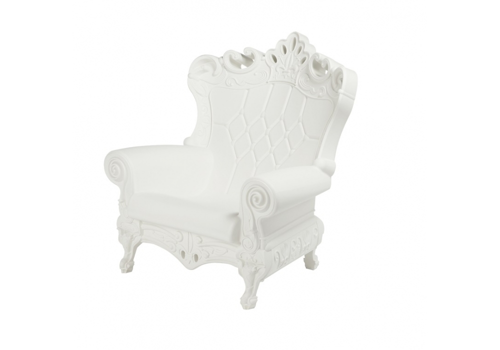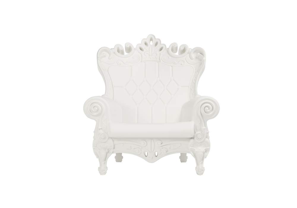 Little Queen of Love firmata da Graziano Moro & Renato Pigatti per Slide è una poltroncina caratterizzata da dettagli e finiture in stile rococò. Disponibile in differenti finiture