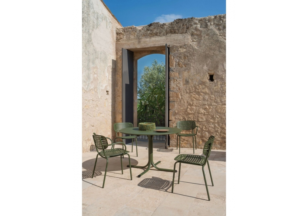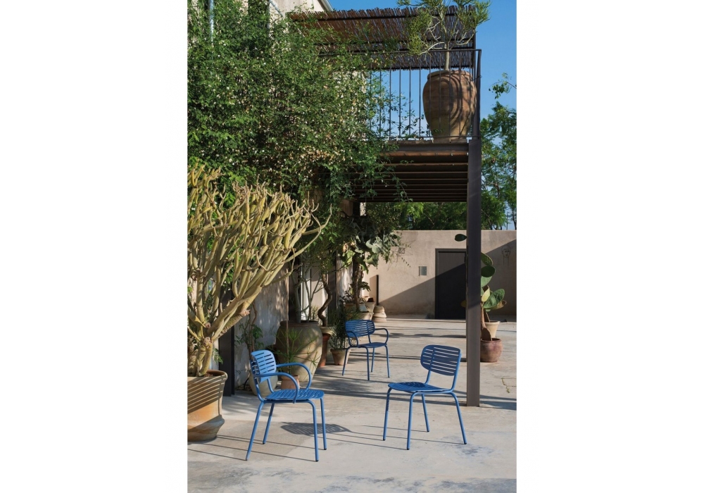 Mom firmata da Florent Coirier per EMU è una poltroncina in acciaio, ispirata ai tradizionali vassoi giapponesi, può essere usata sia outdoor che indoor. Disponibile in differenti finiture.