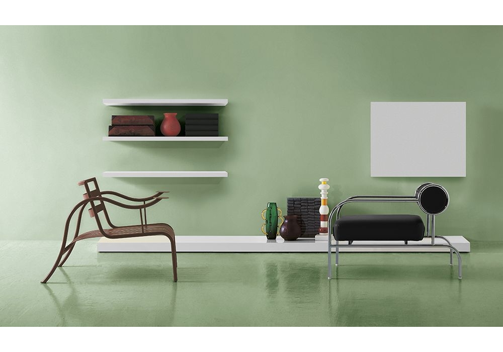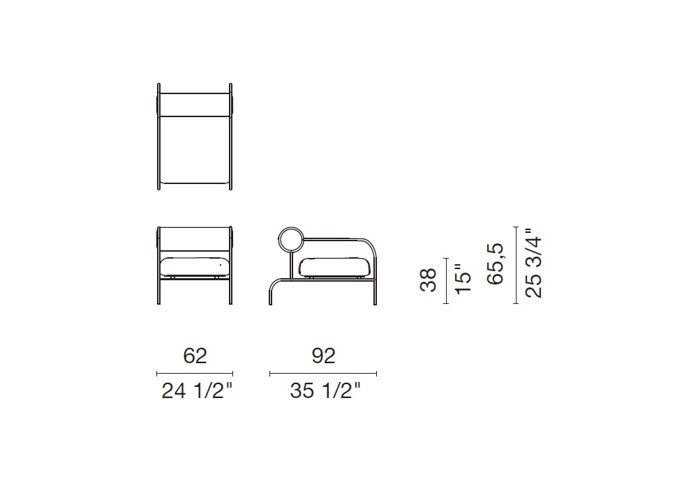 Sofa with Arms firmata da Shiro Kuramata per Cappellini è una poltroncina con struttura tubolare in metallo e seduta e schienale imbottiti, con rivestimento fisso in tessuto o in pelle.