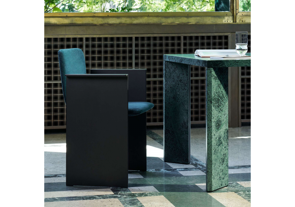 Flutz firmata da Michael Anastassiades per Cassina è una poltroncina realizzata con struttura esterna in alluminio e rivestimento in tessuto o in pelle.