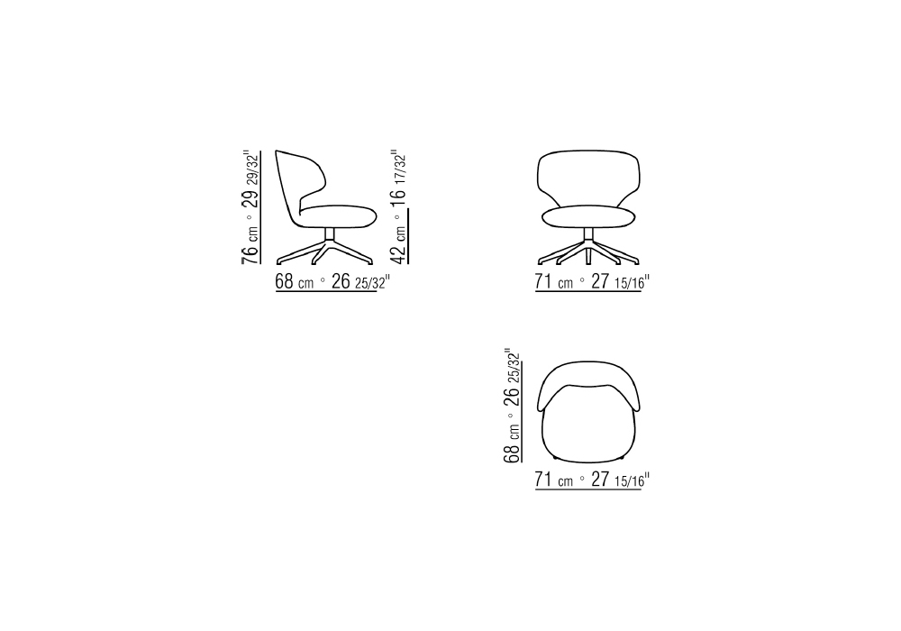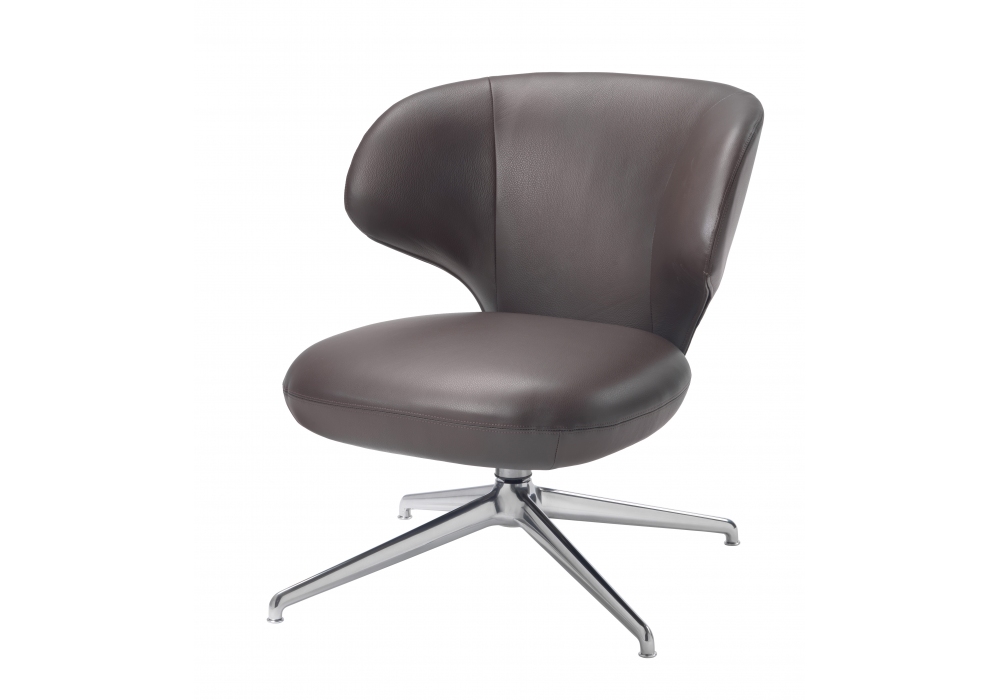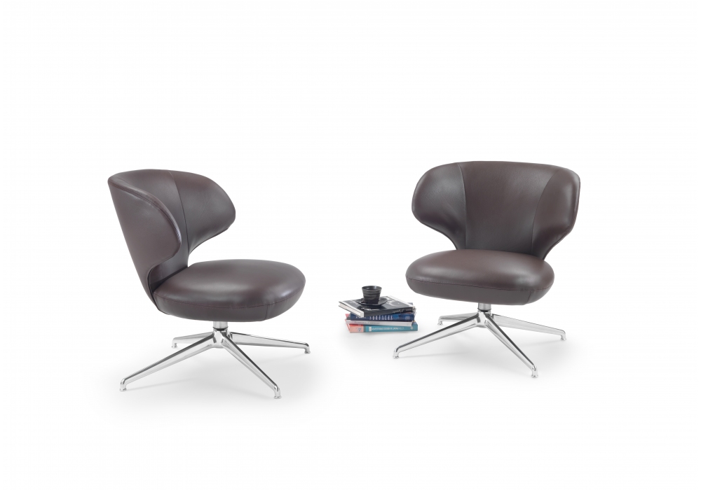 Susanne firmata da Roberto Lazzeroni per Flexform è una poltroncina con base in metallo disponibile nelle versioni girevole a 4 o 5 stelle e schienale e sedile rivestiti in tessuto o pelle.