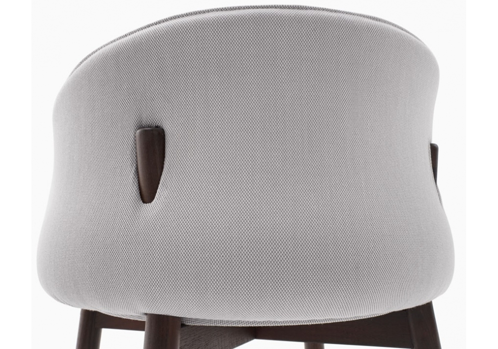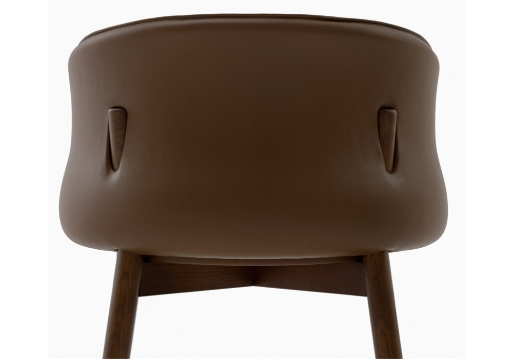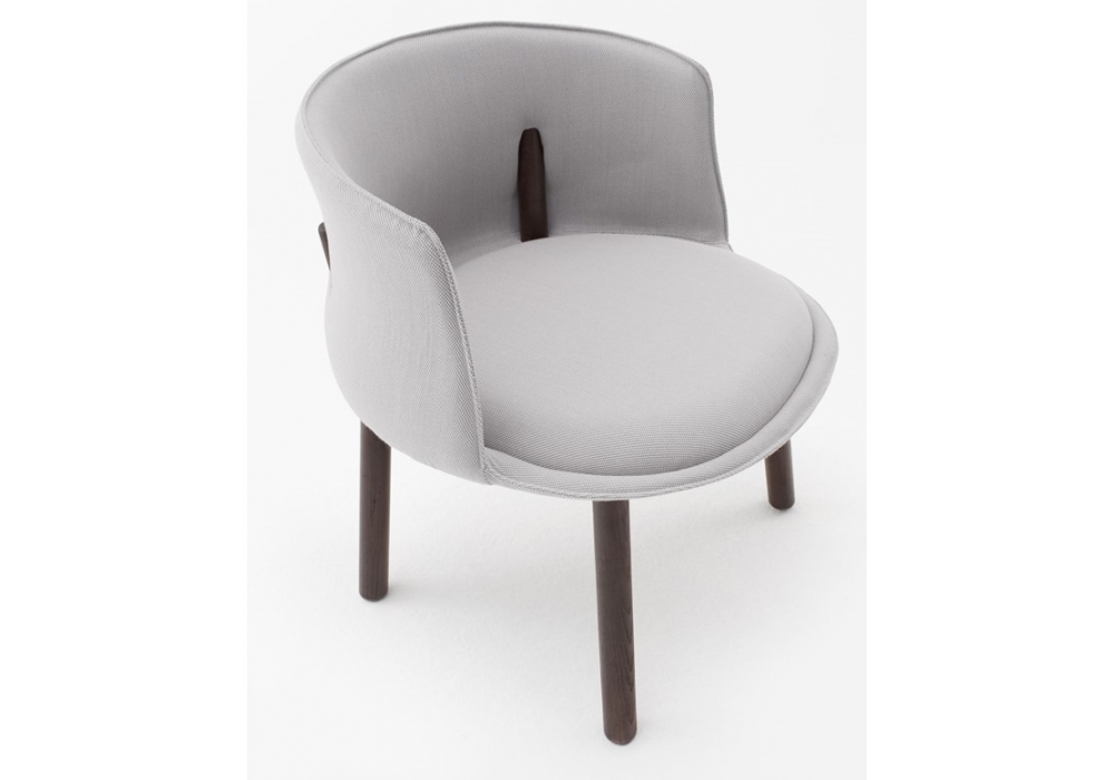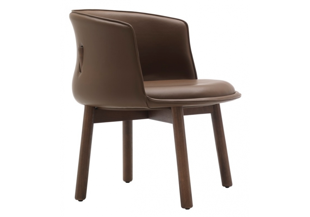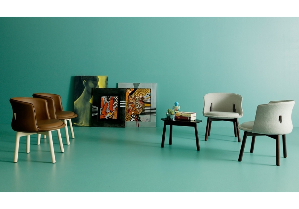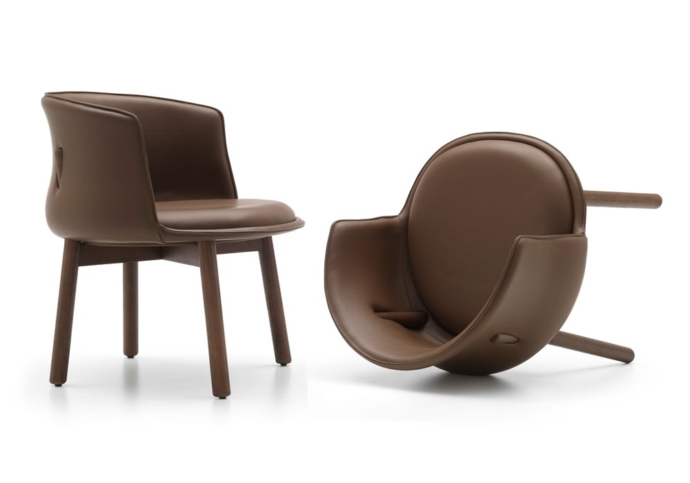 Peg firmata da Nendo per Cappellini è una poltroncina realizzata con gambe in massello di frassino e rivestimento in tessuto o in pelle.