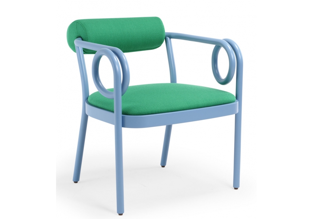 Loop firmata da India Mahdavi per Gebrüder Thonet Vienna è una poltroncina con struttura in faggio curvato, seduta e schienale imbottiti con rivestimento in tessuto o pelle. Disponibile in diverse finiture.
