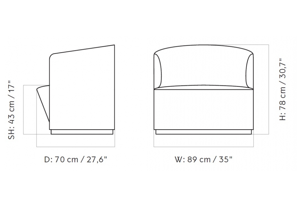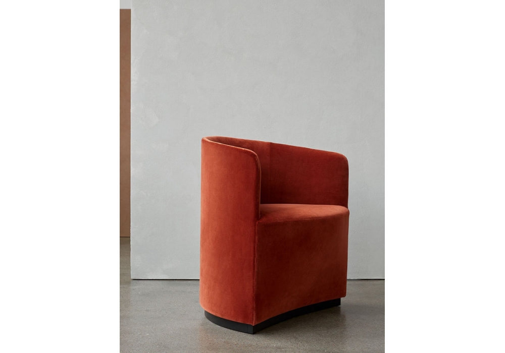 Tearoom firmata da Nick Ross per Audo Copenhagen è una poltroncina imbottita con rivestimento in tessuto, base in MDF nero. Disponibile in diverse finiture e dimensioni.