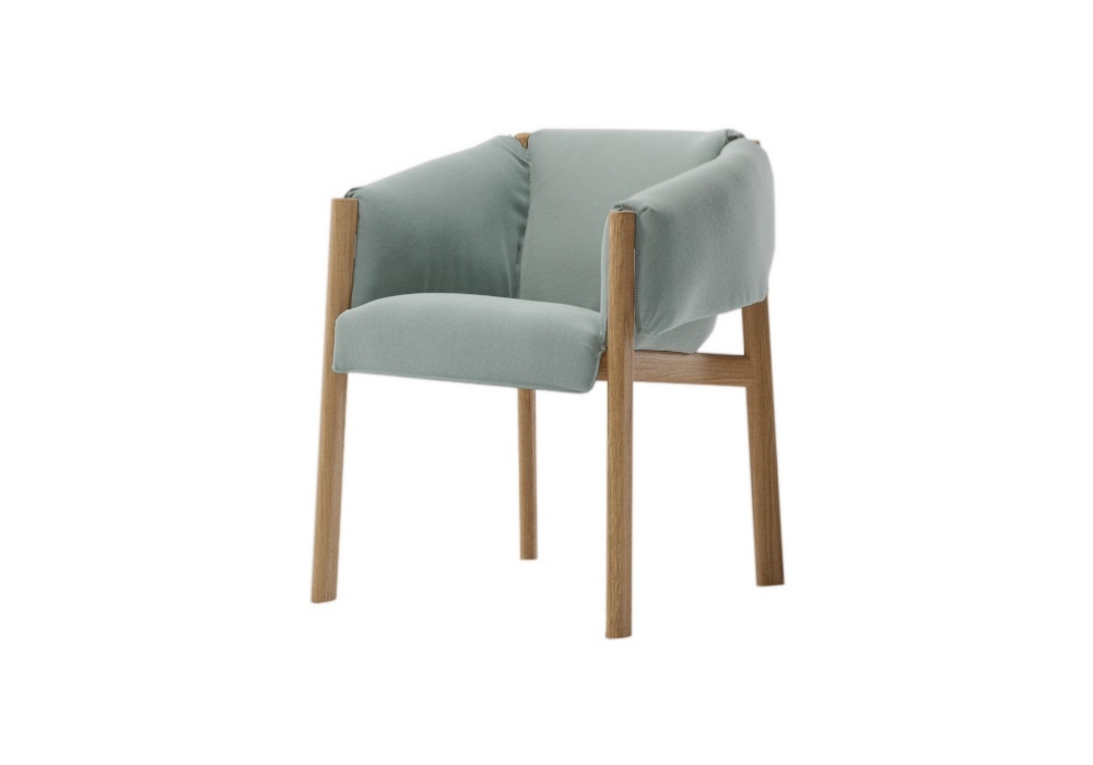 Plumon firmata da Patricia Urquiola per Kettal è una poltroncina con struttura in teak e rivestimento in tessuto.