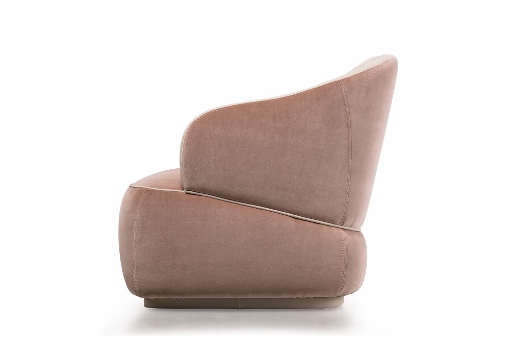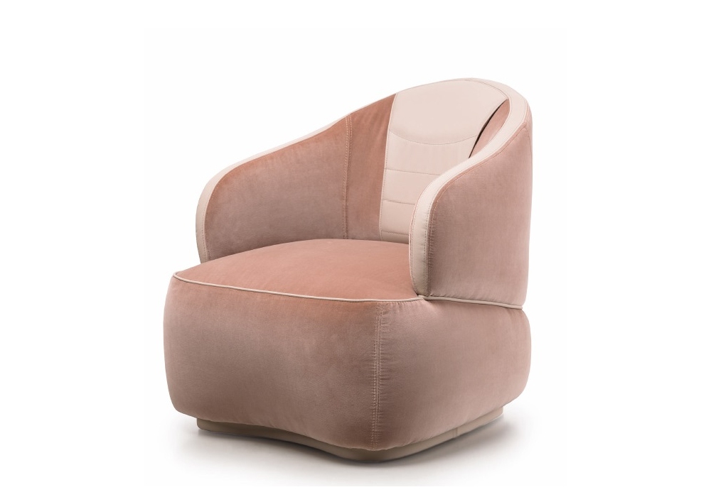 Bloom firmata e prodottra da Turri è una poltroncina con struttura in multistrato e legno massello imbottito con Poliuretano espanso a quote differenziate con rivestimento in differenti tessuti o pelli non sfoderabili. Dettagli in metallo in finitura oro chiaro. Base rivestita in pelle. Disponibile nella versione con poggiatesta o con cintura.