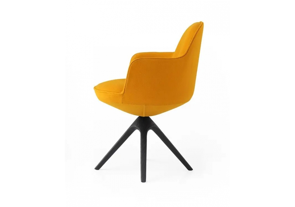 Romby firmata da GamFratesi per Porro è una poltroncina realizzata con base in massello di frassino, e seduta imbottita e rivestita in tessuto o pelle.