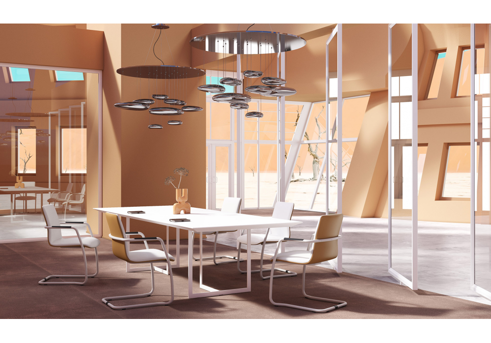 Sori firmata da R&D Sitlosophy per Sitlosophy è una poltroncina con base a slitta in metallo verniciato a polveri epossidiche. La struttura è costitituita da una monoscocca in multistrato curvato, imbottita con poliuretano espanso flessibile e rivestita in differenti pelli, tessuti o ecopelli. Copribraccioli in polipropilene nero.