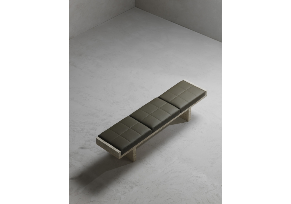 Ever firmata da Christophe Pillet per Kreoo è una panca strutturata da lastre di marmo di diverso spessore ancorate l'una all'altra formando un unico solido blocco. La cuscinatura è imbottita e rivastita in pelle o tessuto Mastrotto. Ever è disponibile in differenti finiture.
