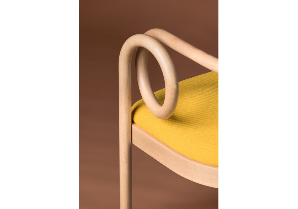 Loop Dining firmata da India Mahdavi per Gebrüder Thonet Vienna è una poltroncina con struttura in faggio curvato. Seduta imbottita rivestita in tessuto o pelle, schienale in legno. Disponibile in diverse finiture.