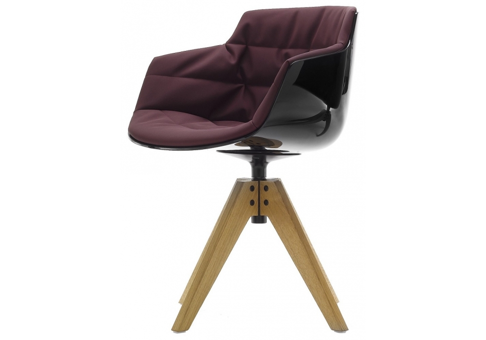 Flow Slim firmata da Jean Marie Massaud per MDF Italia è una poltroncina imbottita con 4 gambe VN in rovere, in diverse finiture. La scocca è pigmentata in massa in diversi colori, con esterno lucido e interno microgoffrato. Rivestimento in tessuto o pelle, in diverse finiture. Girevole a 360°.