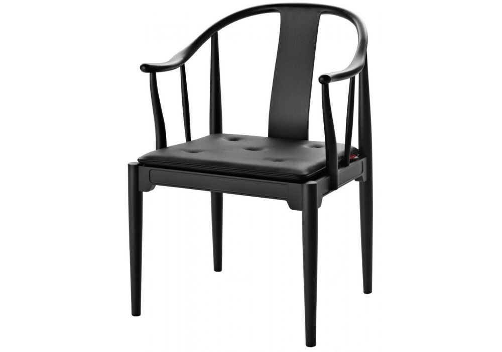 China Chair firmata da Hans J. Wegner per Fritz Hansen è una poltroncina realizzata con struttura in legno massello ciliegio laccato o in frassino nero e cuscino seduta in pelle. Disponibile in diverse finiture.