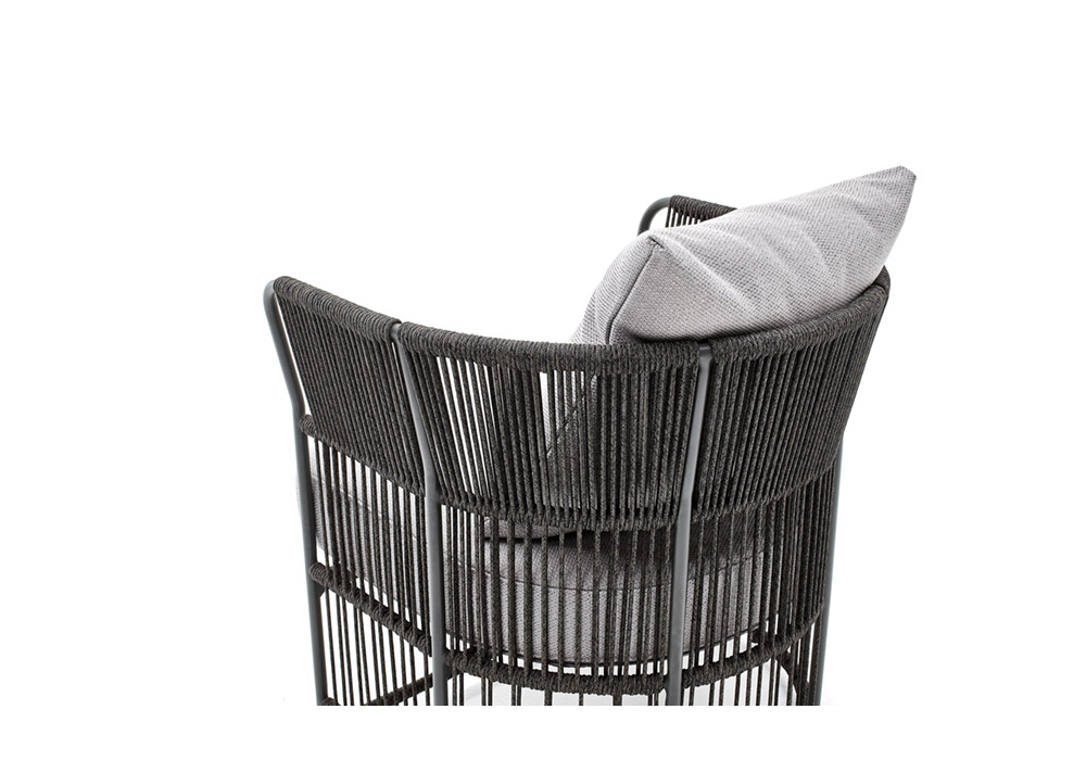 Tibidabo disegnata da Calvi & Brambilla per Varaschin è una poltrona con intelaiatura in alluminio verniciato a polvere con rivestimento in fibra sintetica intrecciata. Piedini in polipropilene. Cuscini sfoderabili. Disponibile in differenti finiture.
