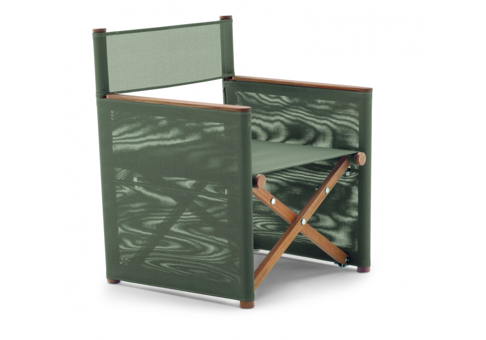 Orson 002 è una poltroncina da regista per esterni realizzata da Gordon Guillaumier per Roda. E' una rivisitazione in chiave contemporanea della classica sedia da regista. Orson, grazie al suo comodo sistema di chiusura che le permette di rimanere in piedi da sola, ha una linea fresca e innovativa, arricchita dal tessuto strutturale Canatex, che la veste anche lateralmente, e la struttura realizzata in massello di teak, impreziosita da dettagli in acciaio inox 304 elettrolucidato.