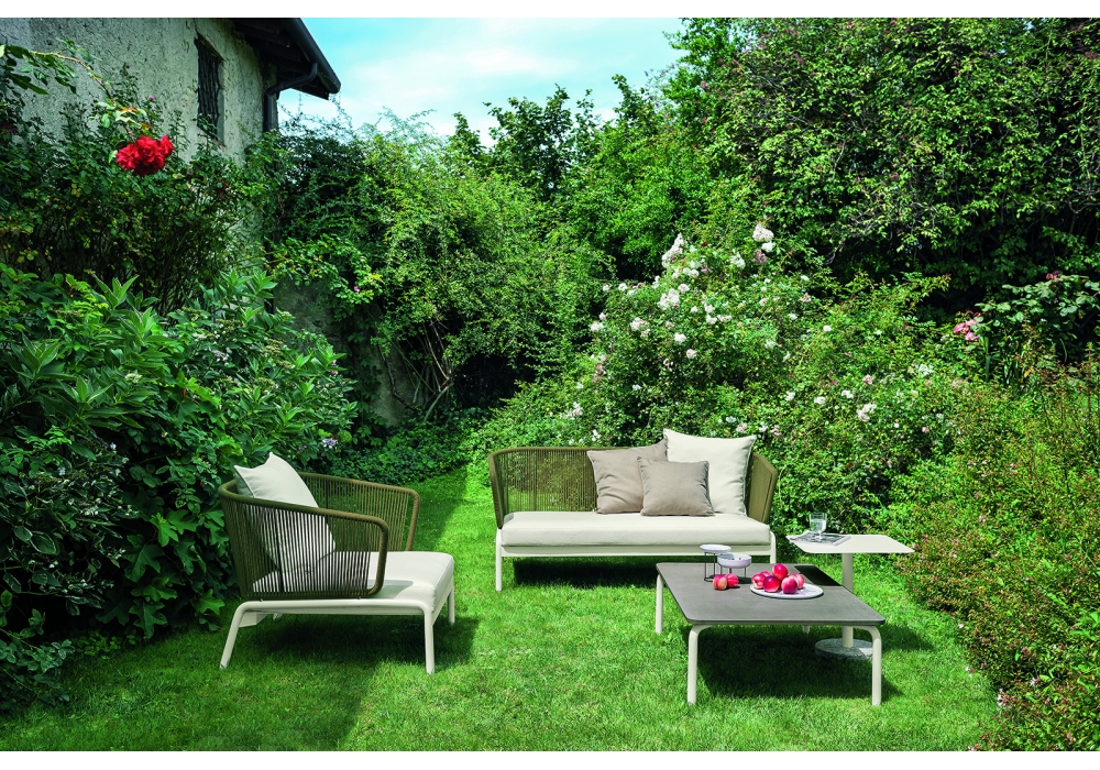 Spool è una poltroncina per esterni realizzata da Rodolfo Dordoni per Roda. Un fitto susseguirsi di corde, abbracciate ad una cornice in tubolare metallico dalle linee essenziali e sinuose, crea l’illusione di una spola per la tessitura. Spool è un progetto che dà vita ad un nuovo e vibrante racconto fatto di trame e suggestivi giochi di ombre, creati dalla luce che filtra tra gli intrecci dello schienale. Il risultato è una collezione dal design dirompente, un perfetto equilibrio tra forza e leggerezza, che non trascura il comfort delle sedute, in grado di accogliere un’abbondanza di soffici cuscini. Le strutture, in acciaio inox verniciato per esterno, sono disponibili nella versione color smoke con corda grey o olive, e nella versione color milk con corda sand o olive.