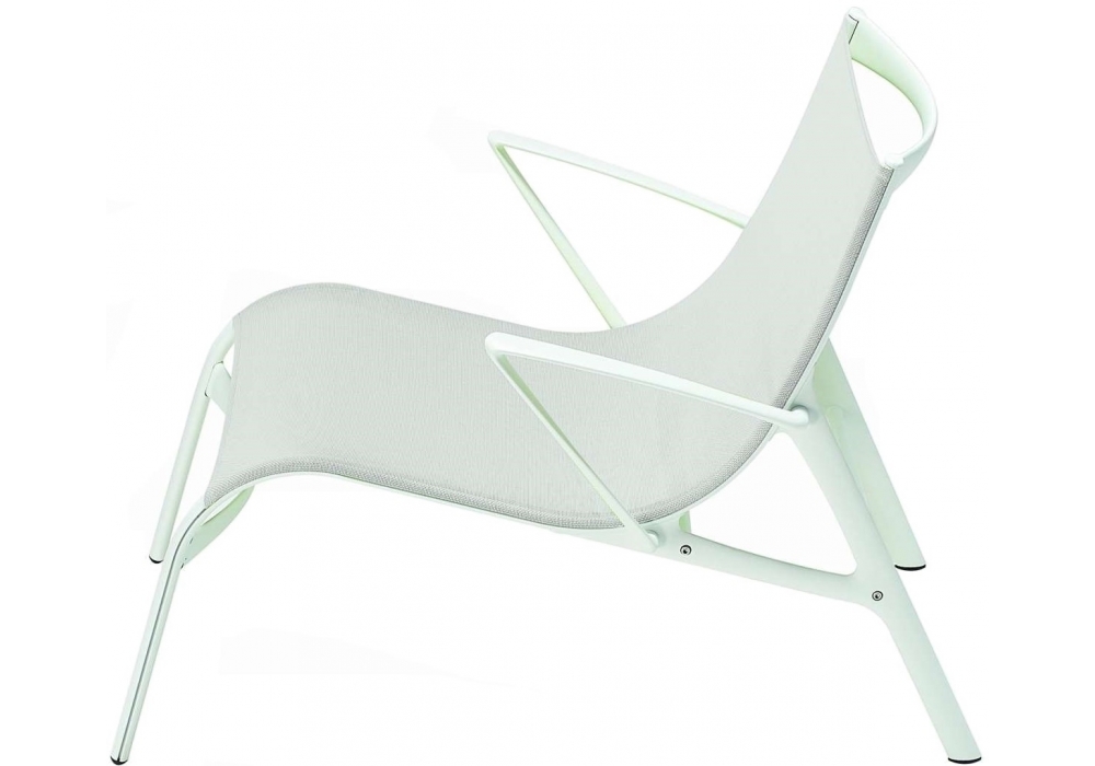 438 Armframe firmata da Alberto Meda per Alias è una poltrona per esterno con struttura in alluminio estruso, seduta e schienale in rete ignifuga di poliestere. Disponibile in diversi colori.