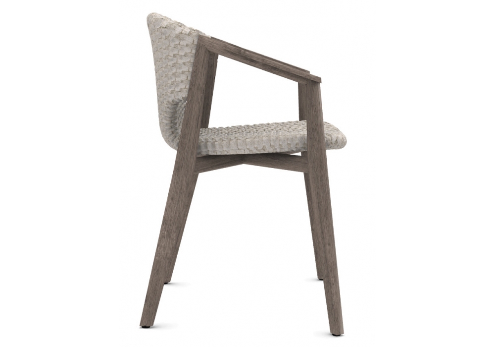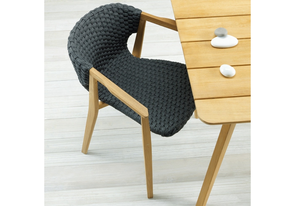 Knit firmata da Patrick Norguet per Ethimo è una poltroncina con struttura in legno di teak in differenti finiture e rivestimento.