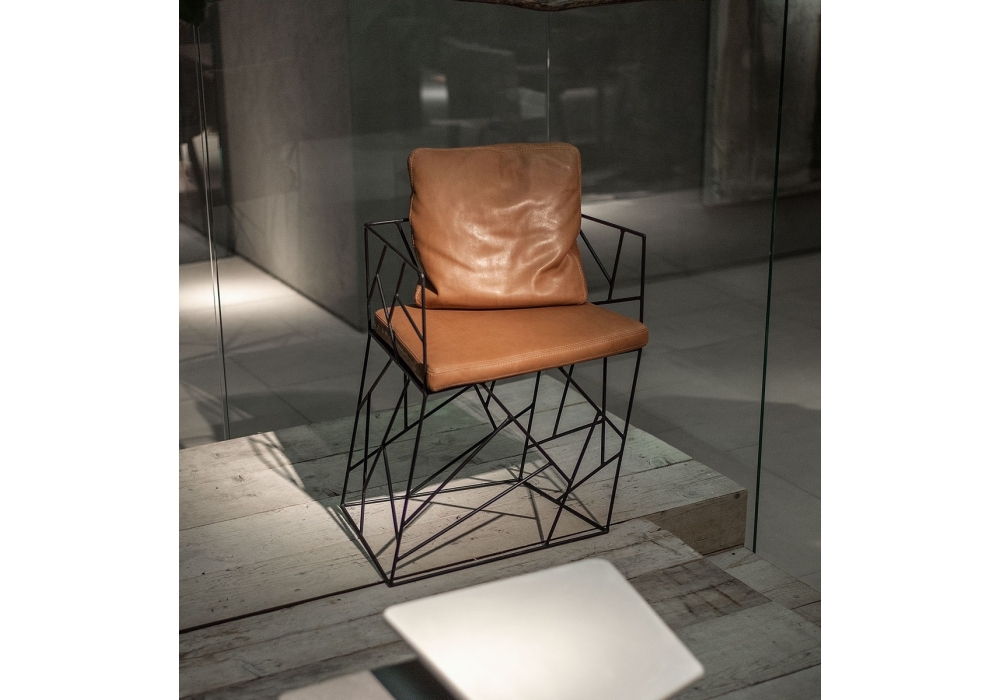 Craklé firmata da Antonino Sciortino per Baxter è una bellissima poltroncina outdoor con struttura in tondino di metallo zincato verniciato nero opaco. Cuscino di seduta in poliuretano espanso predisposto per outdoor incluso. Rivestimento disponibile solo in pelle Cloister.