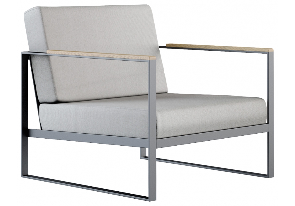 Garden Easy Chair firmata da Broberg & Ridderstråle per Röshults è una poltrona con struttura in acciaio inossidabile antracite e teak. Cuscini seduta e schienale realizzati in tessuto Sunbrella® resistente agli agenti atmosferici disponibile in diversi rivestimenti.