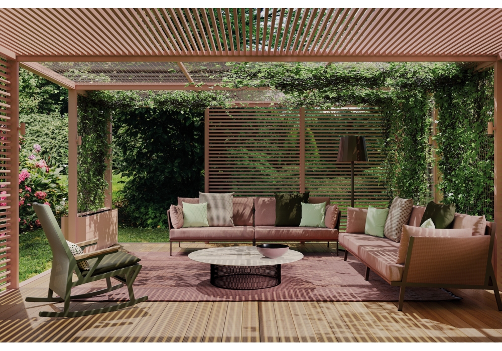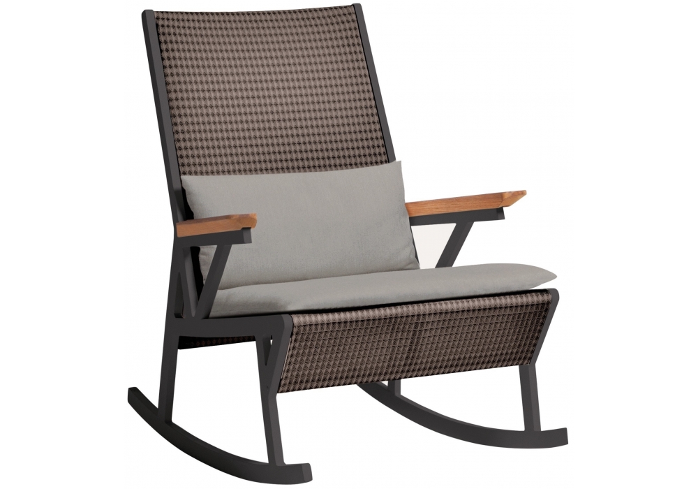 Vieques firmata da Patricia Urquiola per Kettal è una sedia a dondolo caratterizzata dalla combinazione di una struttura in alluminio con un rivoluzionario tessuto tridimensionale dalle eccezionali caratteristiche tecniche, create appositamente per questa collezione e in esclusiva per Kettal.