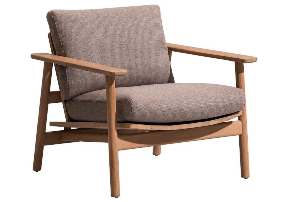 Riva firmata da Jasper Morrison per Kettal è una poltrona con struttura interamente realizzata in legno teak. La cuscinatura di seduta e schiena è imbottira e rivestimento in tessuto disponibile in differenti finiture.