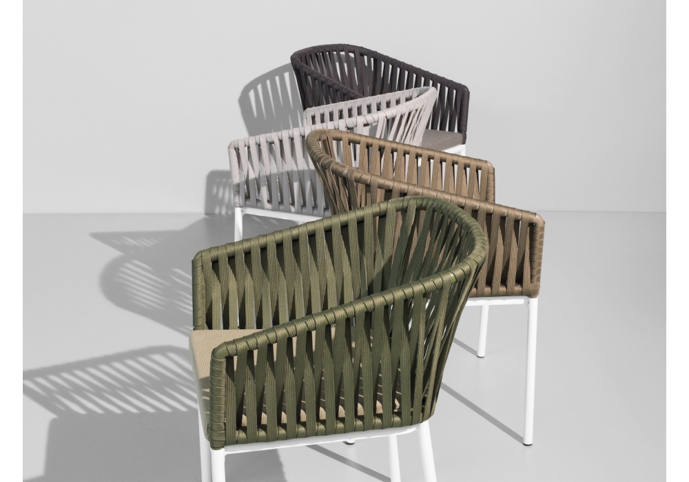 Bitta firmata da Rodolfo Dordoni per Kettal è una poltroncina da pranzo con telaio realizzato interamente in alluminio verniciato o in legno teak. Lo schienale è rivestito interamente in corda sintetica mentre la cuscinatura di seduta e schienale è imbottira e rivestita in tessuto per uso outdoor. Bitta è disponibile in differenti finiture.