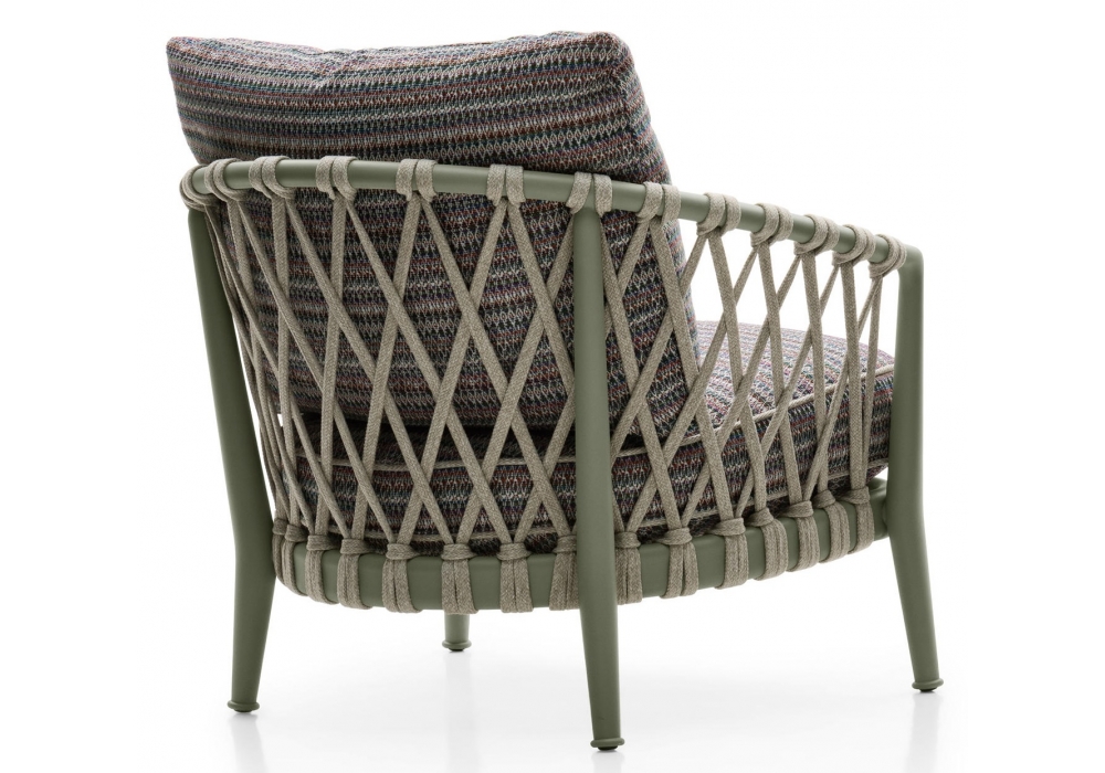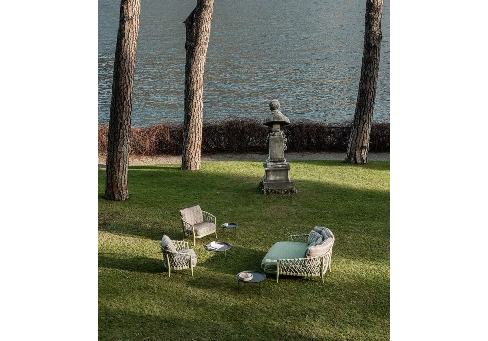 Erica '19 disegnata da Antonio Citterio per B&B Italia Outdoor è una poltrona con struttura in alluminio e intreccio in polipropilene. Cuscino schienale e sedile disponibili con rivestimento in tessuto. I profili dei cuscini sono disponibili in diverse colorazioni.