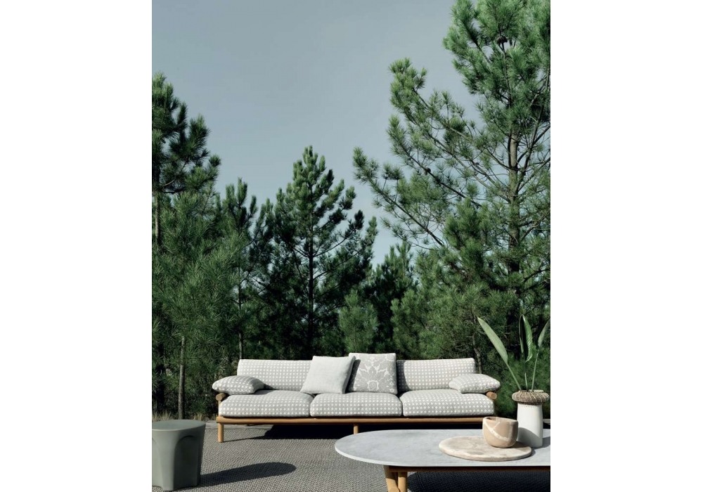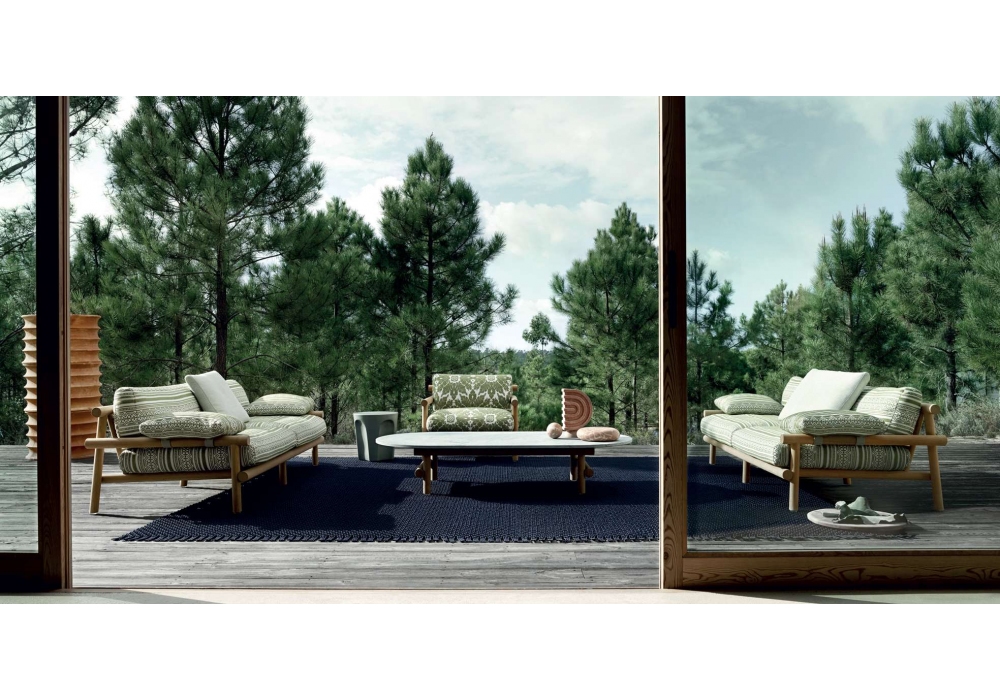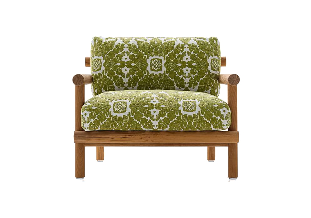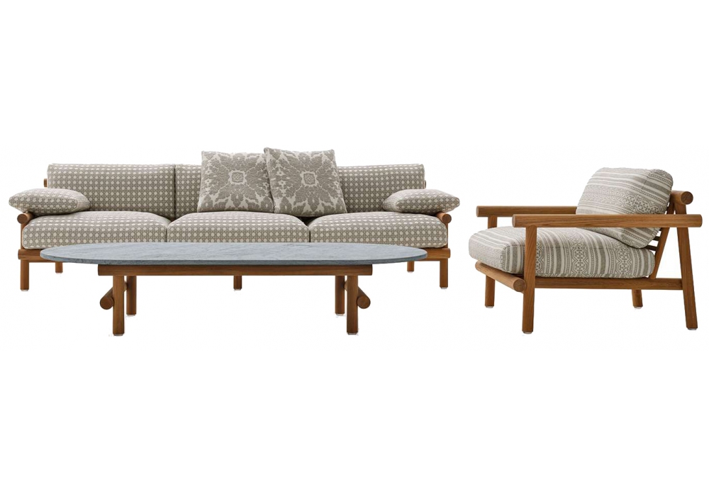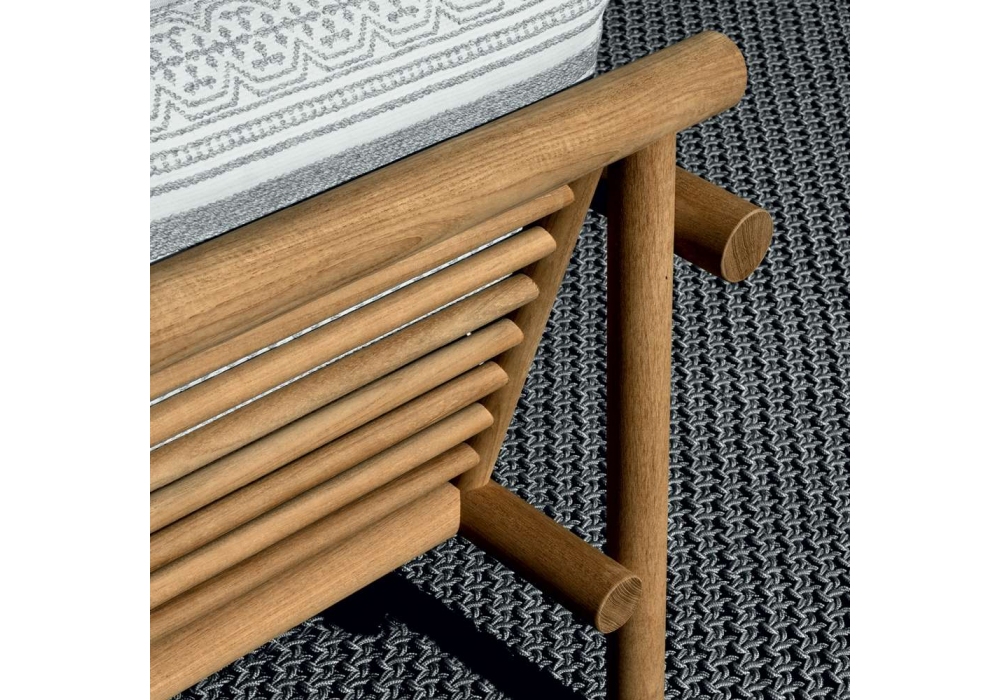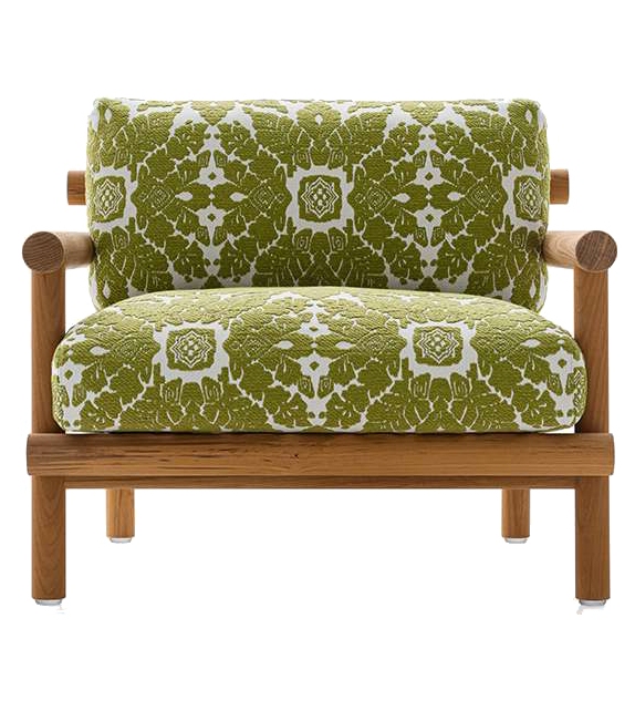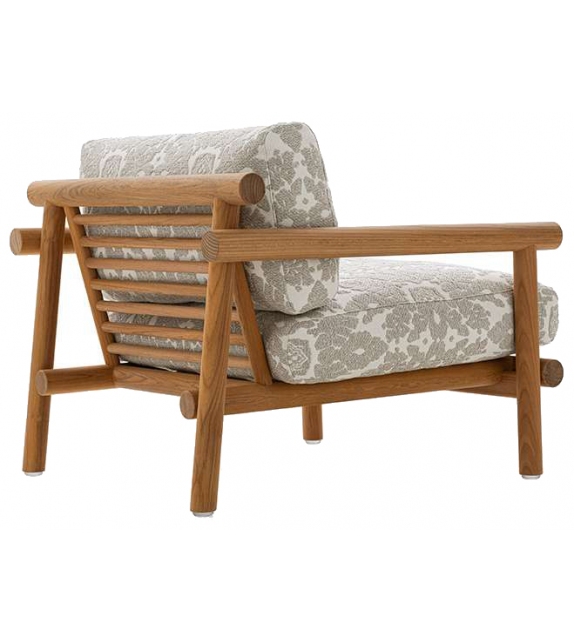 Ayana firmata da Naoto Fukasawa per B&B Italia Outdoor è una poltrona per esterno con struttura in massello di teak naturale, con imbottitura in poliuretano sagomato e rivestimento in tessuto.