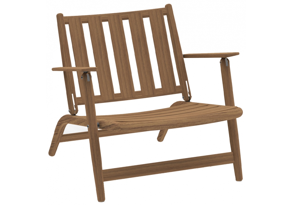 Levante 007 firmata da Piero Lissoni per Roda è una poltrona in teak adatta per uso esterno.