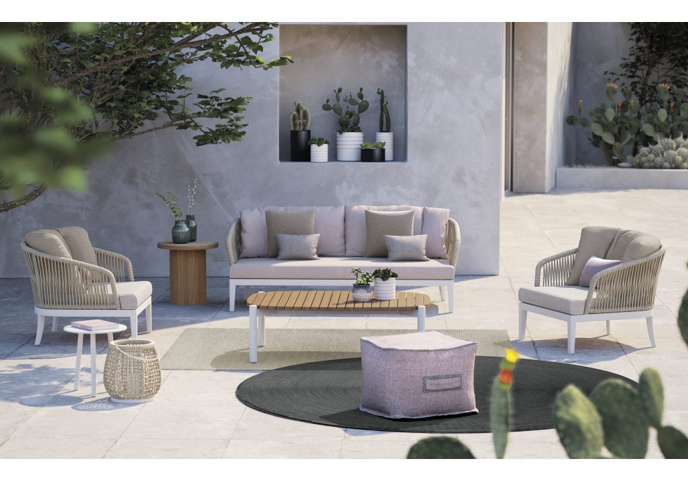 Dream 2.0 firmata da Atmosphera è una poltrona da esterno realizzata con struttura in alluminio e corda. Rivestimento cuscini schienale e seduta in tessuto. Su richiesta è possibile aggiungere cuscini decorativi di diverse dimensioni.