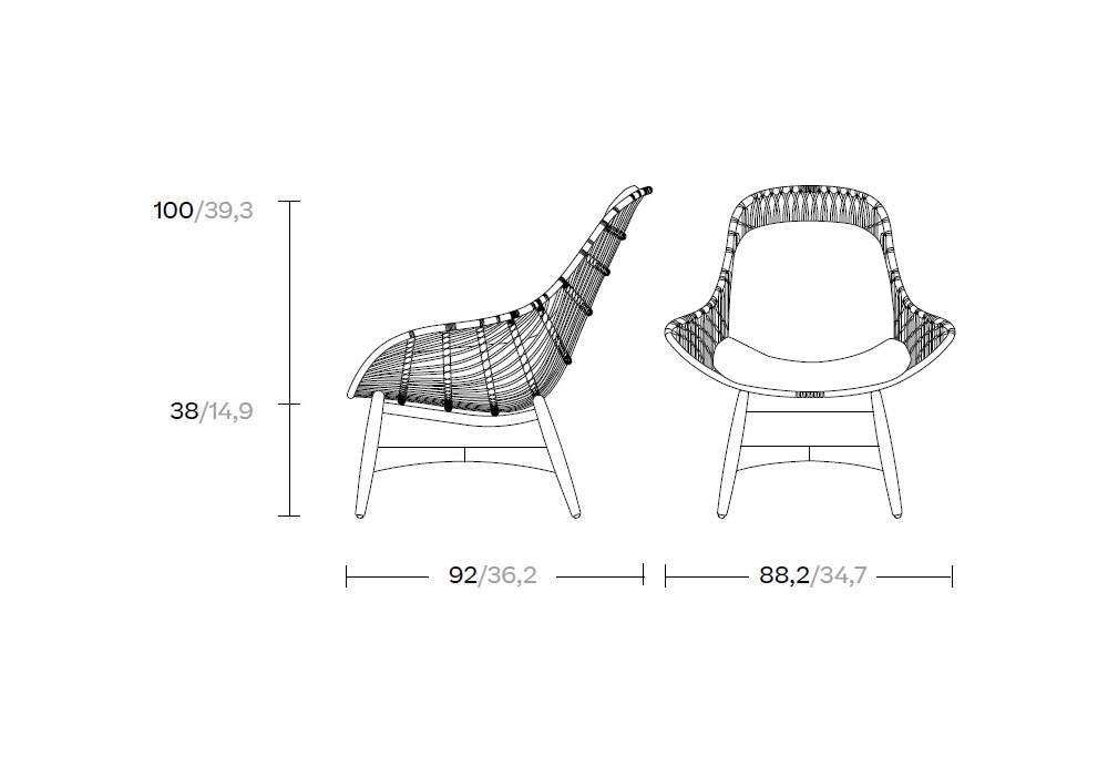 Tou firmata da Naoto Fukasawa per Kettal è una poltrona da esterno con scocca in legno rivestita in fibra sintetica e base in legno teak. La cuscinatura è imbottita e rivestita in tessuto adibito per l'uso outdoor. Tou è disponibile in differenti finiture di rivestimento.