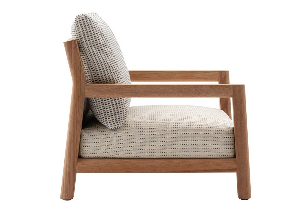 Pablo firmato da Vincent Van Duysen per B&B Italia Outdoor è un divano con struttura in legno di teak naturale, supporto dello schienale in tessuto Laguna o Lamar. Cuscini di seduta e schienale disponibili con rivestimento in tessuto.