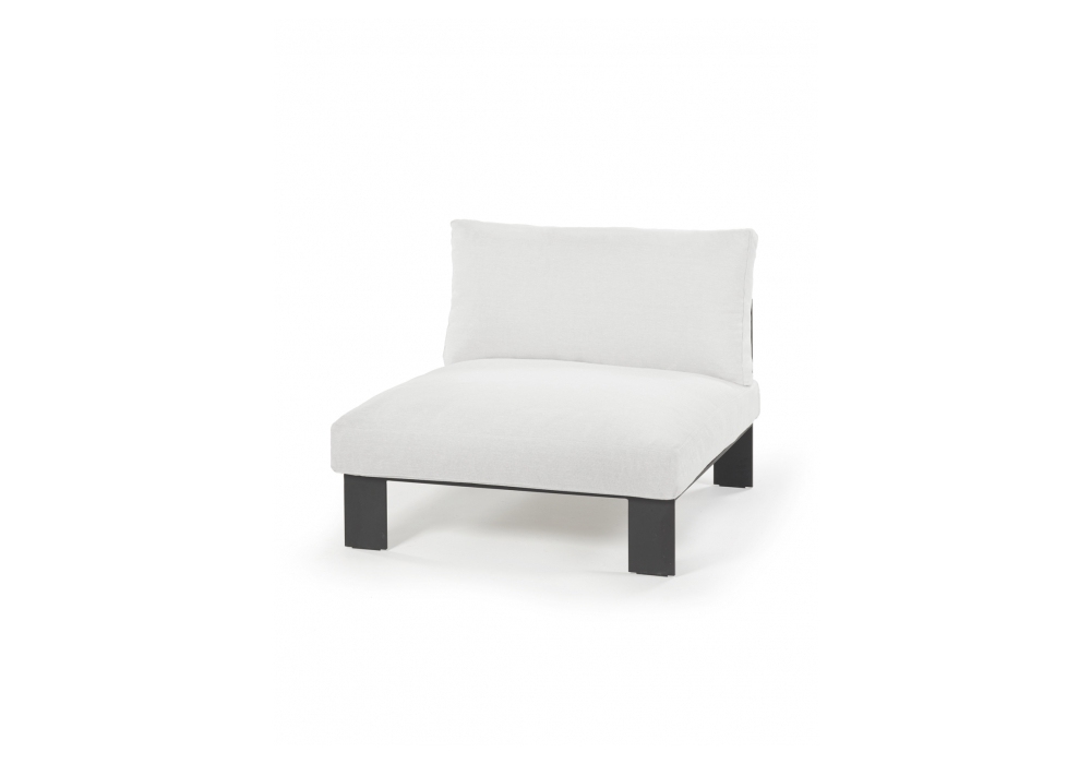 Bench One firmato da Bea Mombaers per Serax è una poltrona da esterno, con struttura portante composta da quadralini di alluminio verniciati di colore nero. Il rivestimento è disponibile in differenti finiture.