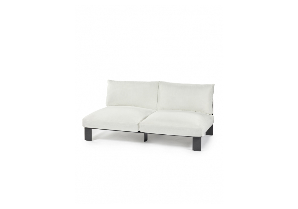 Bench Two firmato da Bea Mombaers per Serax è una poltrona da esterno, con struttura portante composta da quadralini in alluminio verniciati di colore nero. Il rivestimento è disponibile in differenti finiture.