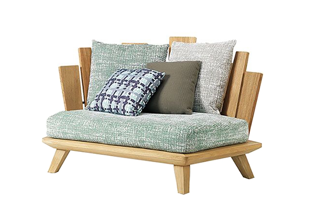 Rafael firmata da Paola Navone per Ethimo è una poltrona con scocca in legno teak e cuscinatura in tessuto. Rafael è disponibile in differenti finiture.