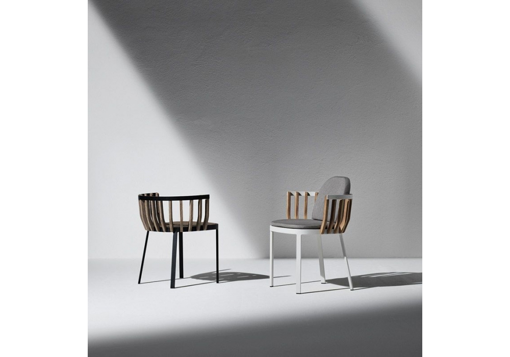 Swing firmata da Patrick Norguet per Ethimo è una poltroncina con struttura in legno di teak ed alluminio verniciato. La cuscinatura e rivestita in tessuto di polipropilene in versione idrorepellente o standard. Swing è disponibile in differenti finiture.