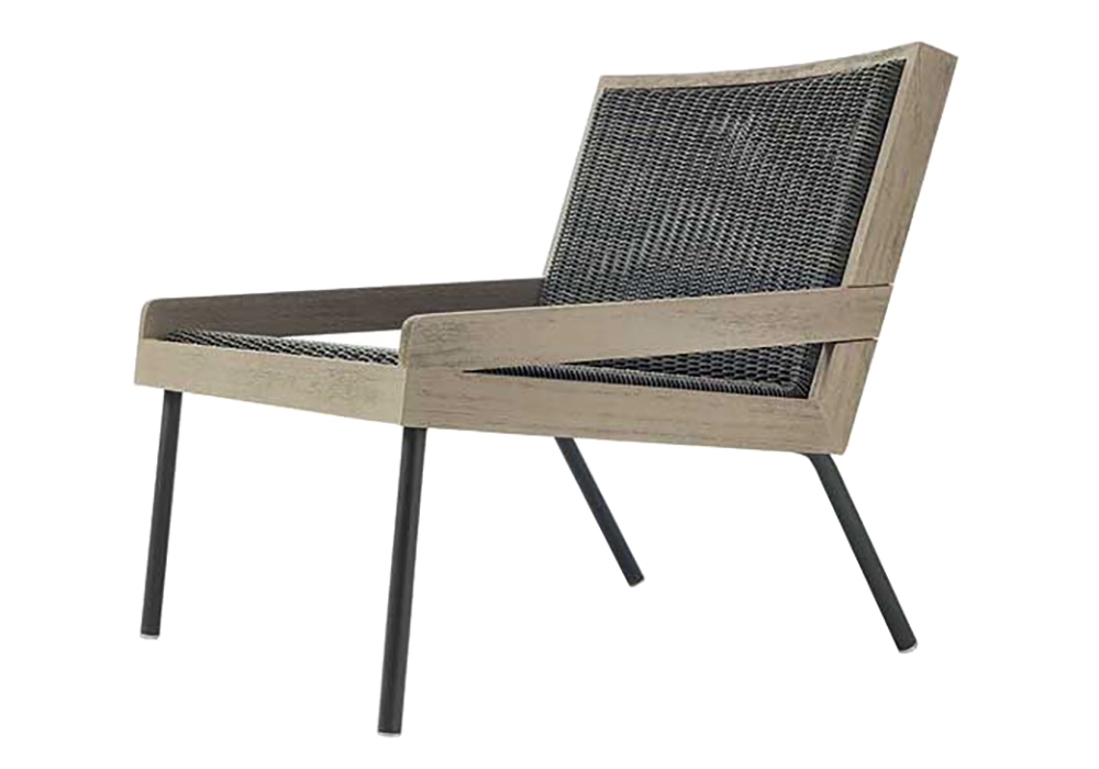 Allaperto Mountain firmata da Matteo Thun, Antonio Rodriguez per Ethimo è una poltrona strutturata in legno teak decapato e metallo con rivestimento in fibra di etwick. La cuscinatura è in tessuto acrilico idrorepellente nella finitura espresso.