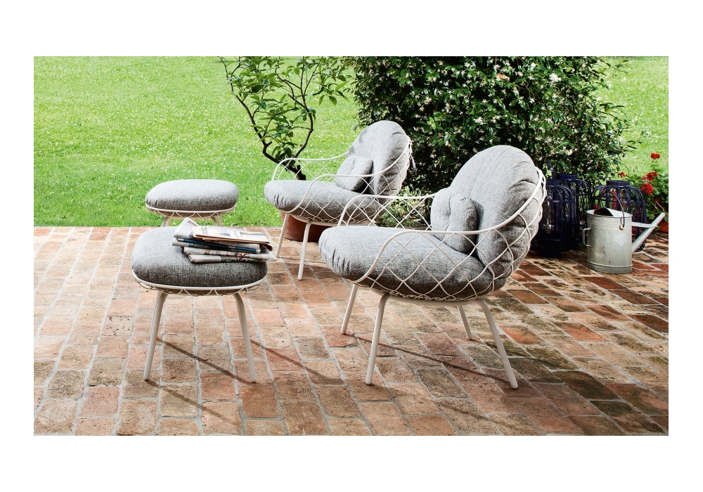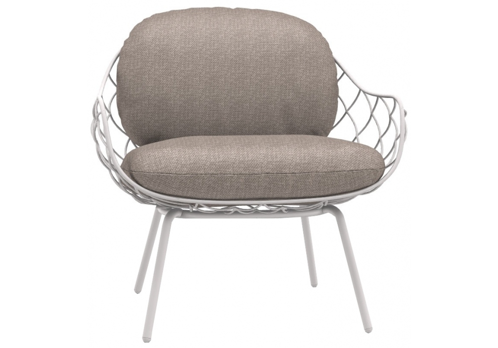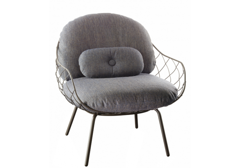 Piña firmata da Jaime Hayón per Magis è una poltroncina adatta anche per esterno con struttura e scocca in acciaio verniciato e cuscino sedile/schienale in poliuretano espanso rivestito in tessuto in diverse finiture. Possibilità di aggiunta del cuscino poggiareni.