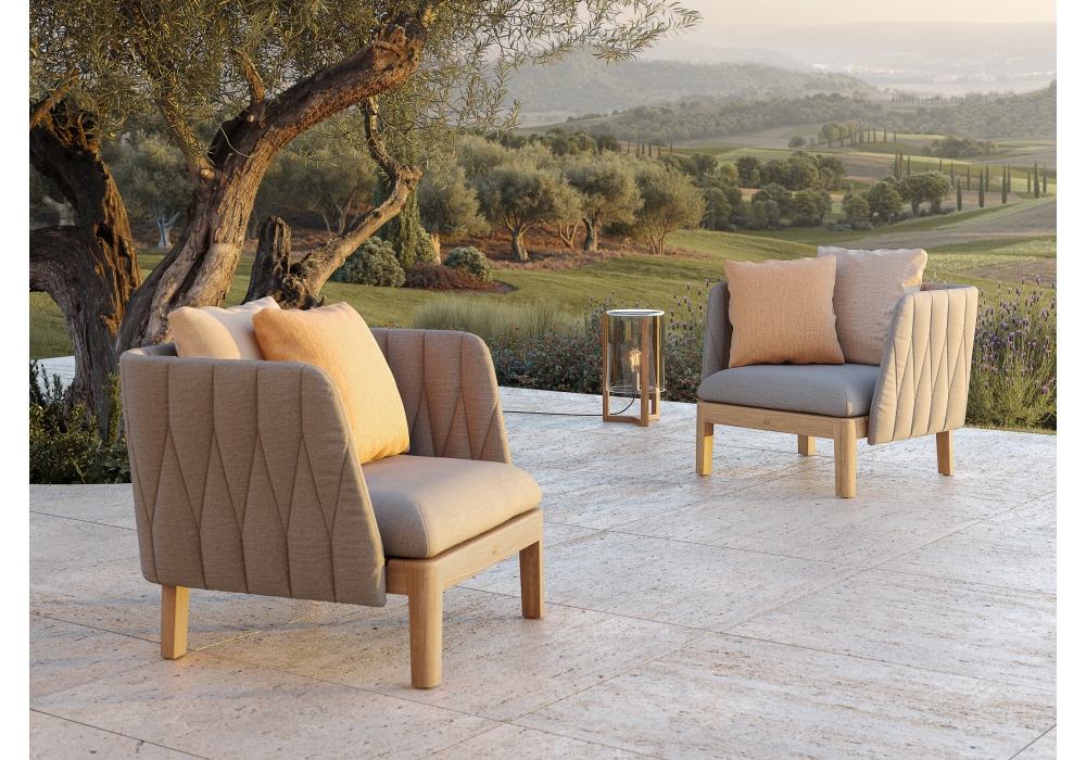 Calypso firmata da Kris Van Puyvelde per Royal Botania è una poltrona da esterno con cuscinatura in differenti finiture. Disponibile nella versione con schienale in tessuto sintetico.