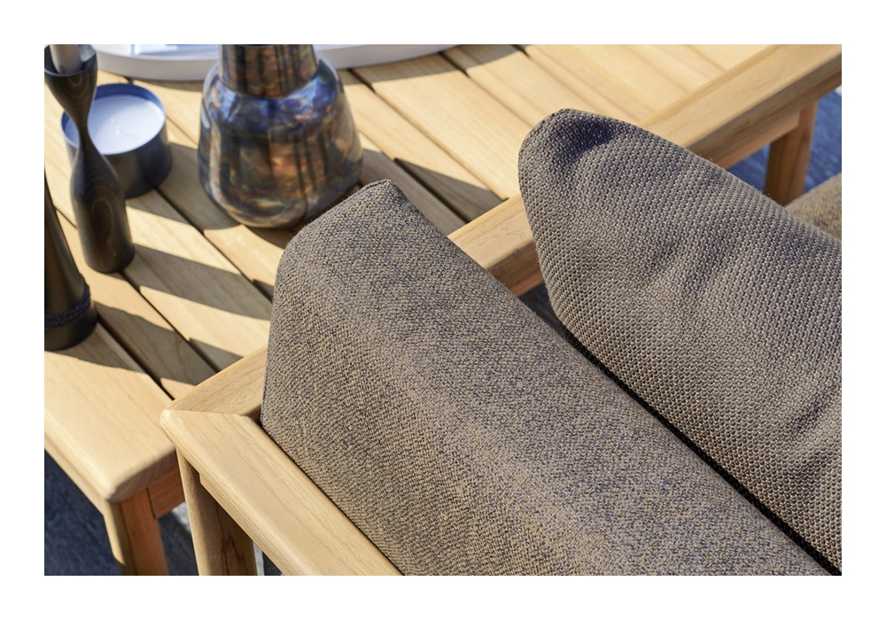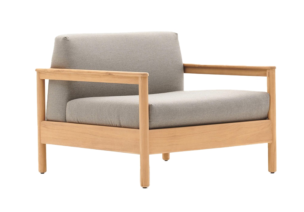 Bali firmata da Alessandro Dubini per Varaschin è una poltrona con struttura portante a vista in legno massello di teak di piantagione certificata. Sedute e schienali imbottiti con gomme Dryfeel da esterno. Disponibile con rivestimento in differenti finiture.