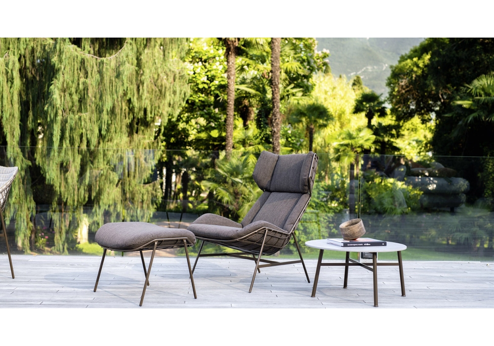 Summer Set firmata da Cristophe Pillet per Varaschin è un bergere con struttura in acciaio verniciato a polveri. Cuscini con imbottitura gomme Dryfeel da esterno. Disponibile in differenti finiture.