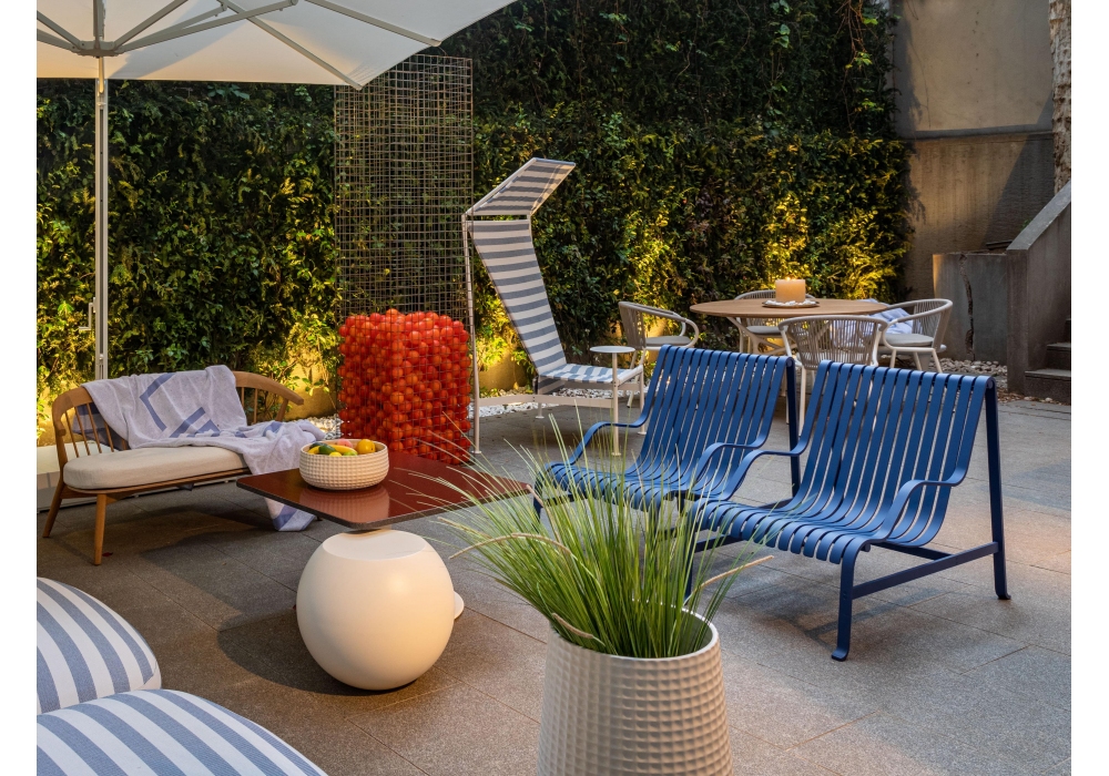 Vendicari Lido firmata da Jangir Maddadi per Cappellini è una poltrona con braccioli per esterno realizzata con profili di alluminio piatti e tondini di supporto. Verniciatura a polvere goffrata. Cuscino seduta in ovatta di poliestere con fodera idrorepellente, su richiesta.